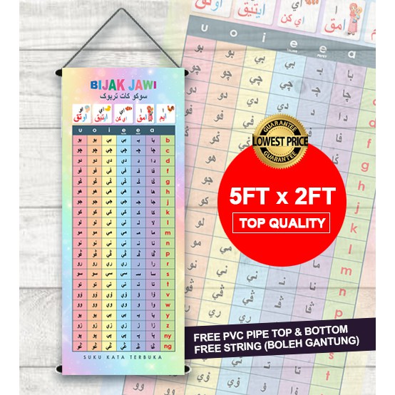 Suku kata terbuka jawi jom mengenali huruf vokal jawi حروف ؤوكل جاوي e,i o,u a. Material pvc 380gsm solvent + free pvc pipe top/bottom + free string 2ft x5ft buy and ready to display.